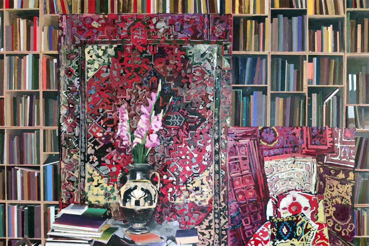 The Cave is a study of the home as a necessary topic during Frandsen’s own isolation on the Danish island of Falster. The historical experience of being confined to Denmark is contrasted by references to objects of art from abroad that Frandsen includes in his painting, such as the ornamented rugs and the Greek vase, which comes from The Metropolitan Museum of Art in New York. The objects connect different paths and sites and act as an echo of European art history in a shut-down Europe.